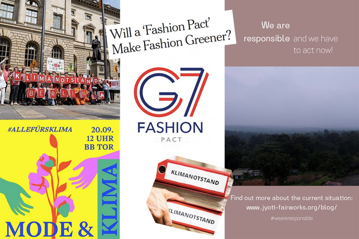 Kurz vor beginn des G7-Gipfels machte der „Fashion Pact“ von sich reden: Der französische Präsident Macron bringt 32 internationale, große Modeunternehmen an einen Tisch und dazu sich dem Klima zu verpflichten. Was zuerst in einem Artikel der deutschen Vogue sehr gut klingt, relativiert sich wieder durch einen ausführlichen Artikel von Fashion Revolution, in dem deutlich wird: Die Forderungen sind zu wenig und sie kommen zu spät. Die New York Times kritisiert weiterhin, dass das Fehlen von rechtlichen Rahmenbedingungen (der Pakt beruht auf freiwilligen Verpflichtungen) den Fashion Pact überhaupt erst für Unternehmen interessant mache, da im Falle einer Nichteinhaltung keine rechtlichen Konsequenzen zu befürchten seien.