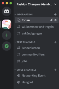 Discord funktioniert ähnlich zur Plattform Slack, die viele von euch aus dem Arbeitskontext kennen dürften. Es gibt einen Fashion Changers Server, dem ihr beitreten könnt. Dort findet ihr verschiedene Kanäle zum Austausch. Außerdem gibt es die Möglichkeit, allen beigetretenen Members 1:1 Nachrichten zu schreiben. So könnt ihr euch besser vernetzen und in Kontakt bleiben!